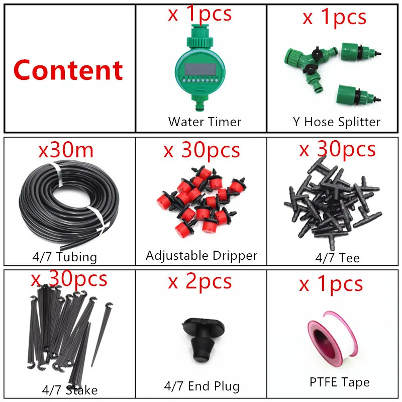 BEST 30m 2-Ways Garden Drip Irrigation System Watering Kits With Water Timer Dripper Atomizer Greenhouse