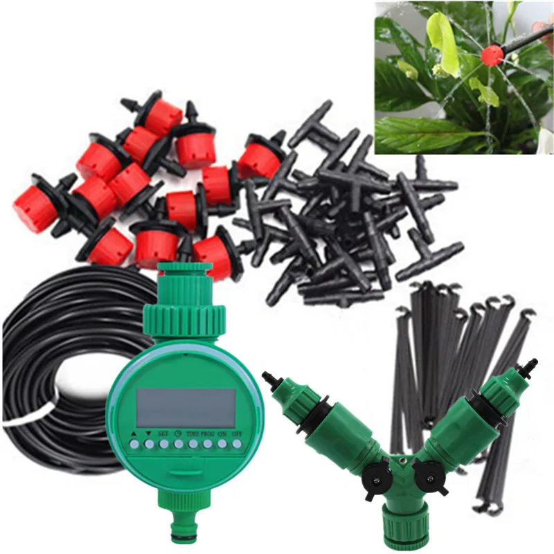 30m 2-Ways Garden Drip Irrigation System Watering Kits With Water Timer Dripper Atomizer Greenhouse