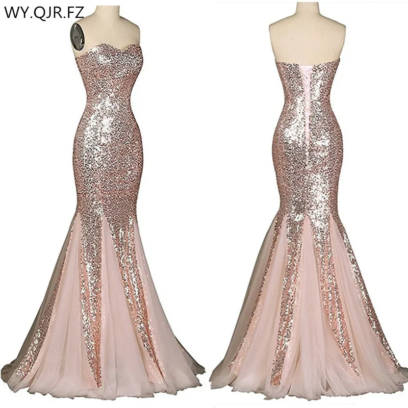 LLY188#Fishtail Paillette Red champagne Lace up Bridesmaid Dresses wedding party prom dress 2019 ch