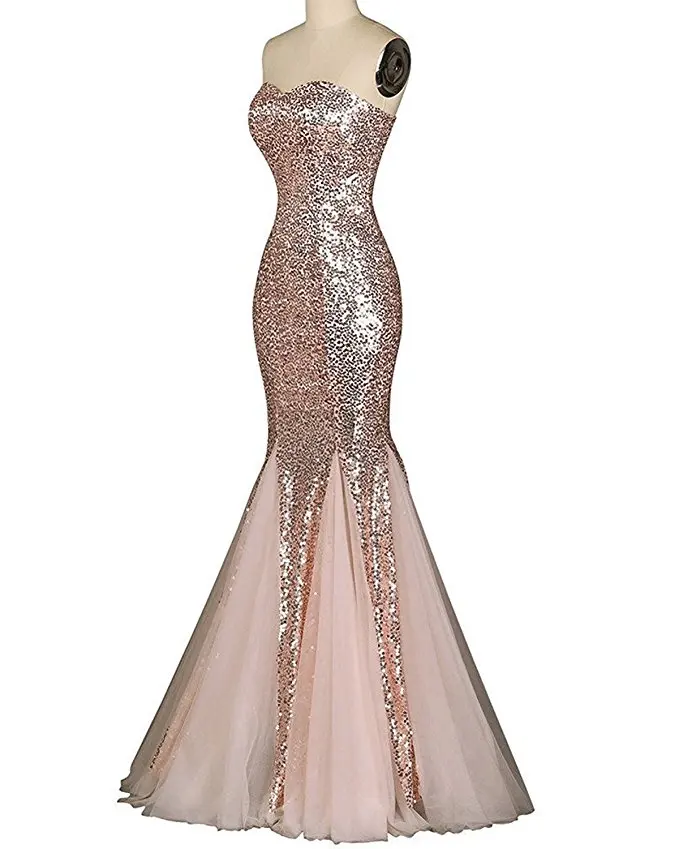 Review LLY188#Fishtail Paillette Red champagne Lace up Bridesmaid Dresses wedding party prom dress 2019 ch