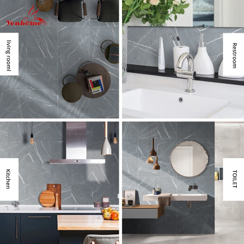Modern Waterproof Bathroom Marble Tile Stickers Vinyl Self adhesive Floor Sticker Renovation Wear-r
