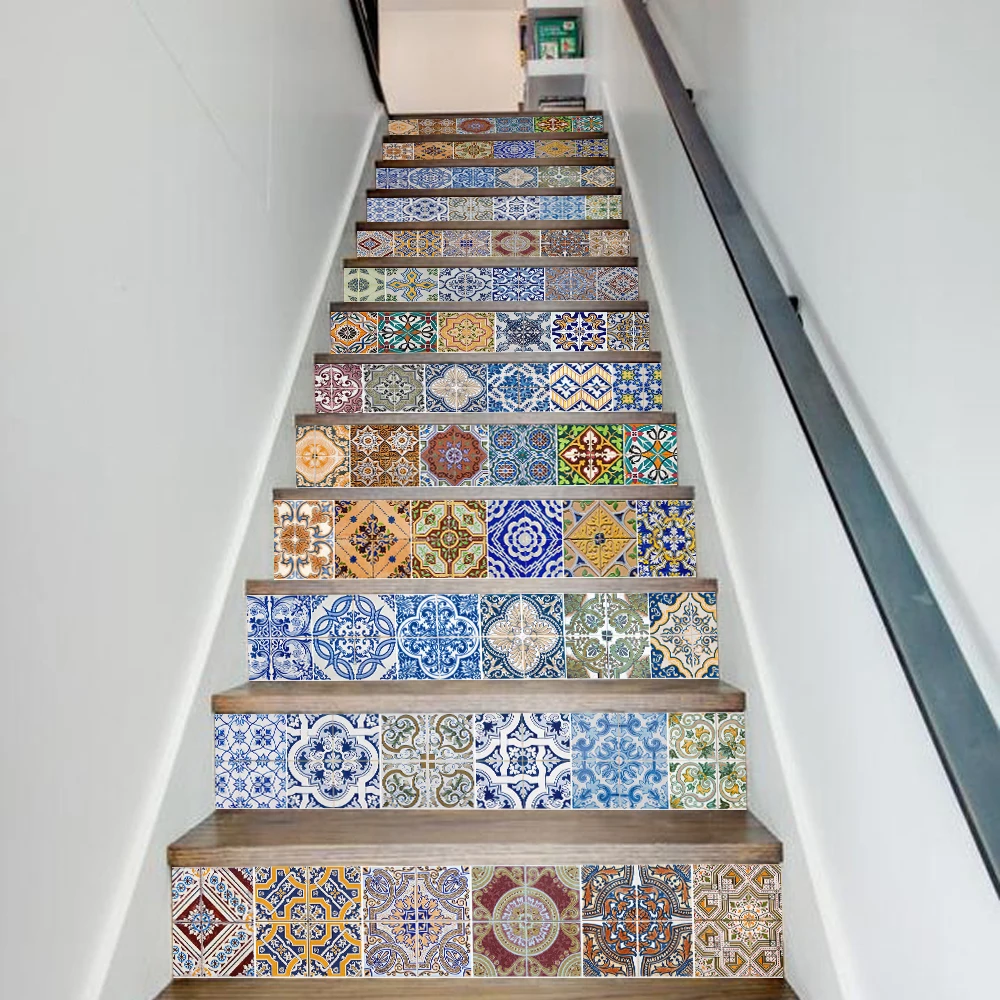 13pcs/set Tile Decals 3D Stair Stickers Waterproof Self-adhesive Removable Wall Floor PVC Stickers