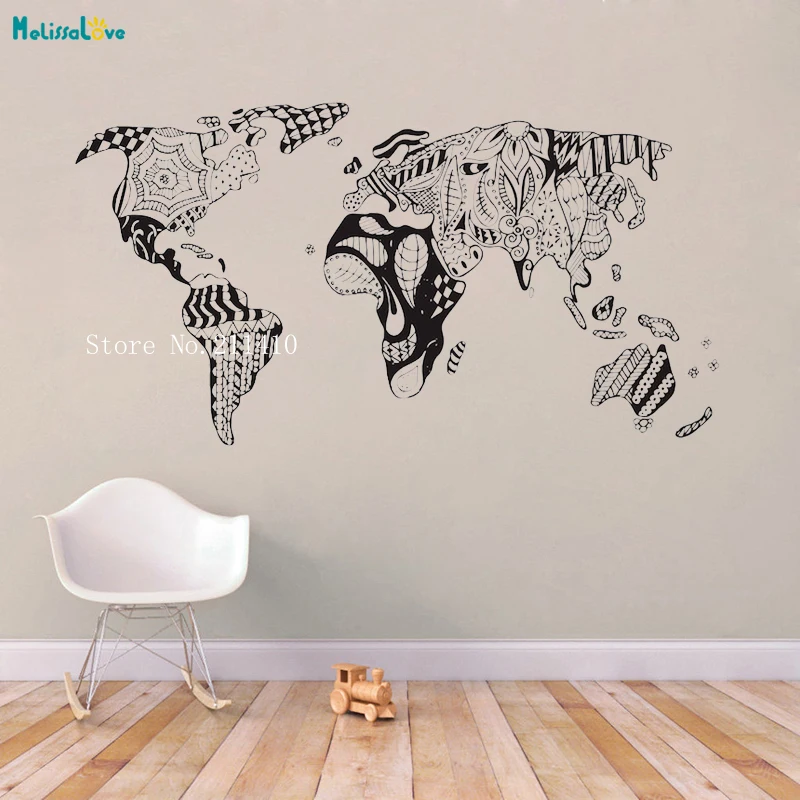 Artistic Creation World Map Vinyl Wall Sticker Beautiful and Detailed Decals Home Decor Living Room