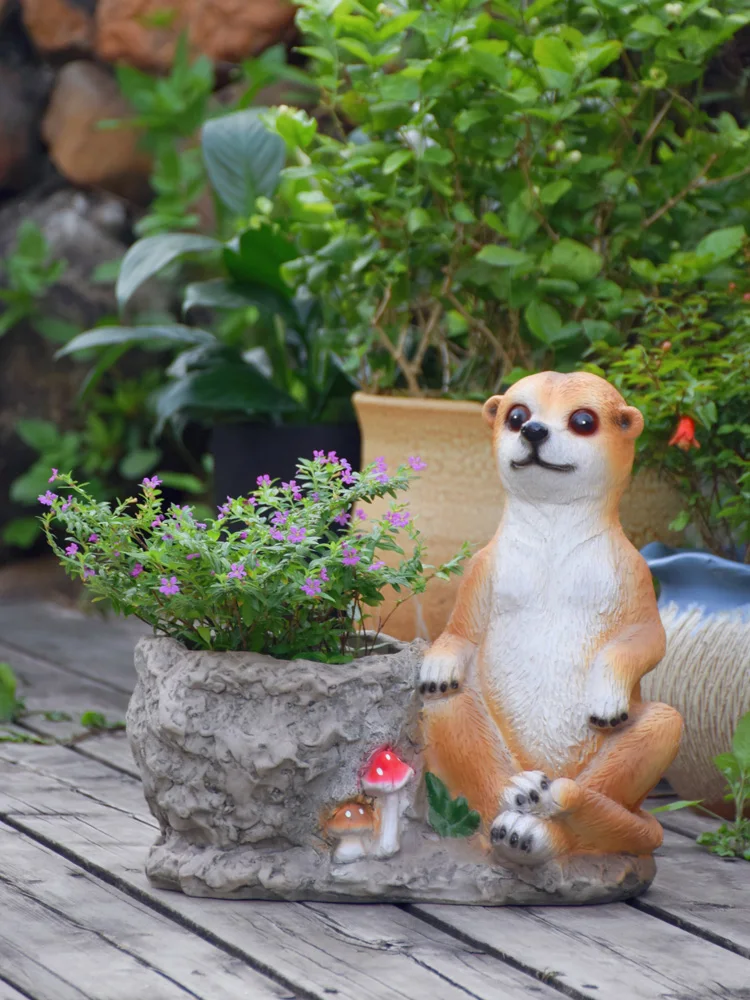 Best Seller Creative Meerkat Look Around In A Mushroom Bush Resin Santa Flower Pot Animal Statue Garden Decor I