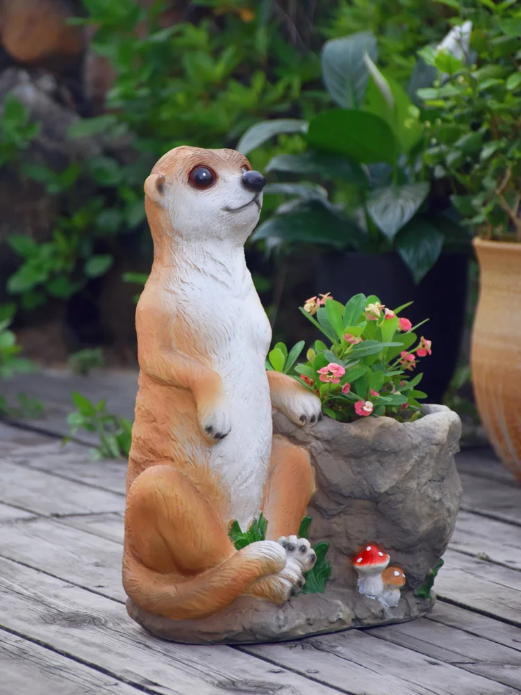 Hot Sale Creative Meerkat Look Around In A Mushroom Bush Resin Santa Flower Pot Animal Statue Garden Decor I
