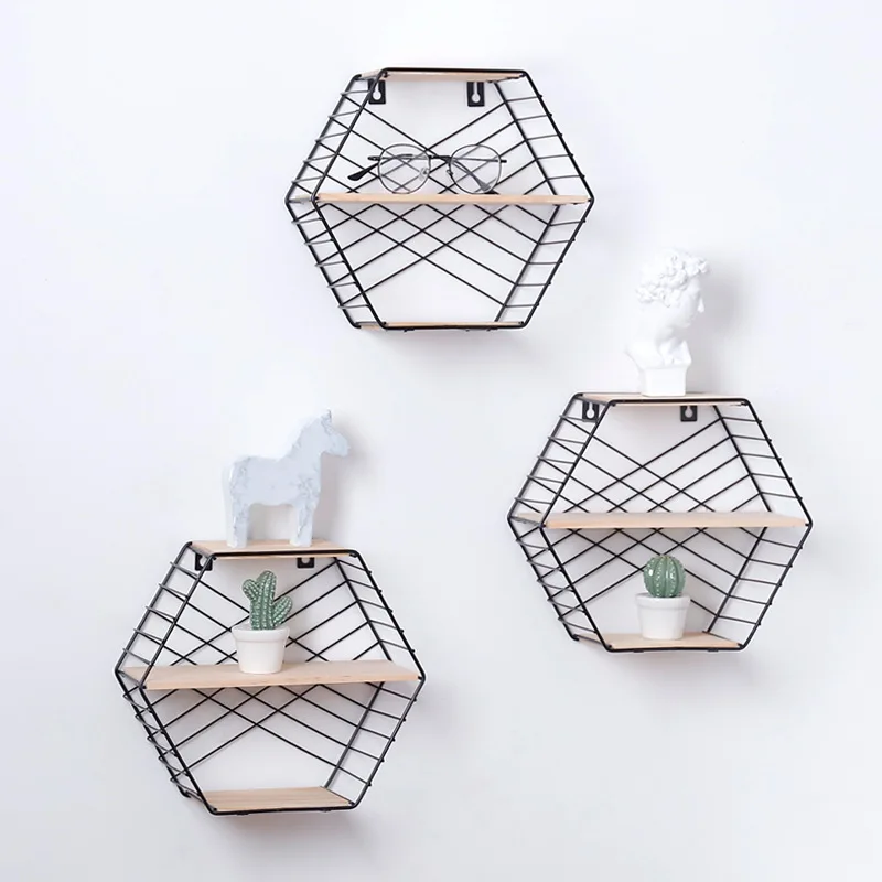 BEST Wooden Iron Storage Holder Garden Plant Shelf Nordic Iron Art Wall Hanging Flower Pot Decoration Wa